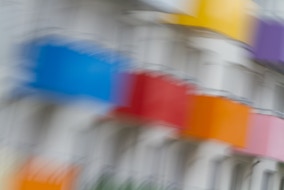 Die Schnelllebigkeit in unseren Städten, die Hast in den Straßen bilden die Grundgedanken für meine Fotoserie. Die Farbwechsel, in der üblichen Kürze des Vorbeifahrens betrachtet, lenken ab, machen auf sich aufmerksam, machen fast nervös, irritieren, erzeugen noch mehr Dynamik und Eile. Die Wahl der langen Belichtungszeit dokumentiert dies zunächst. Als nun gestreckte Momentaufnahme und in Ruhe betrachtet, laden die Fotografien zum Verweilen ein, regen in ihrer teilweise starken Abstraktion zum Nachdenken an und lassen der Phantasie freien Lauf. Das Gebäude an sich rückt in den Hintergrund, ja, es verschwindet zuweilen komplett. Aus einem bunten Ort, aus einem bunten Objekt wird ein farbiges Nichts, das für sich selbst anfängt zu leben und zu wirken.