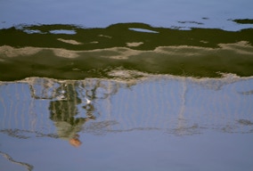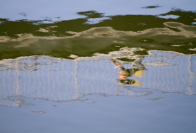 Die Aufnahmen sind digital aufgenommen und nicht verfremdet. Die Abstraktion entsteht alleine durch die natürliche Spiegelung im Wasser.